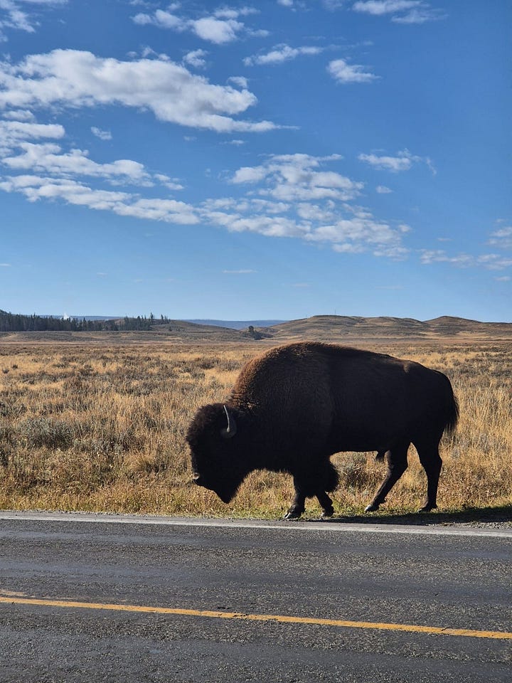 Some photo dumps of the one-off scenarios you can experience here! Walking next to bison, exploring rivers at daybreak, checking out the salt holes, and pulling your car over to see a momma bear walk her cubs across the street.