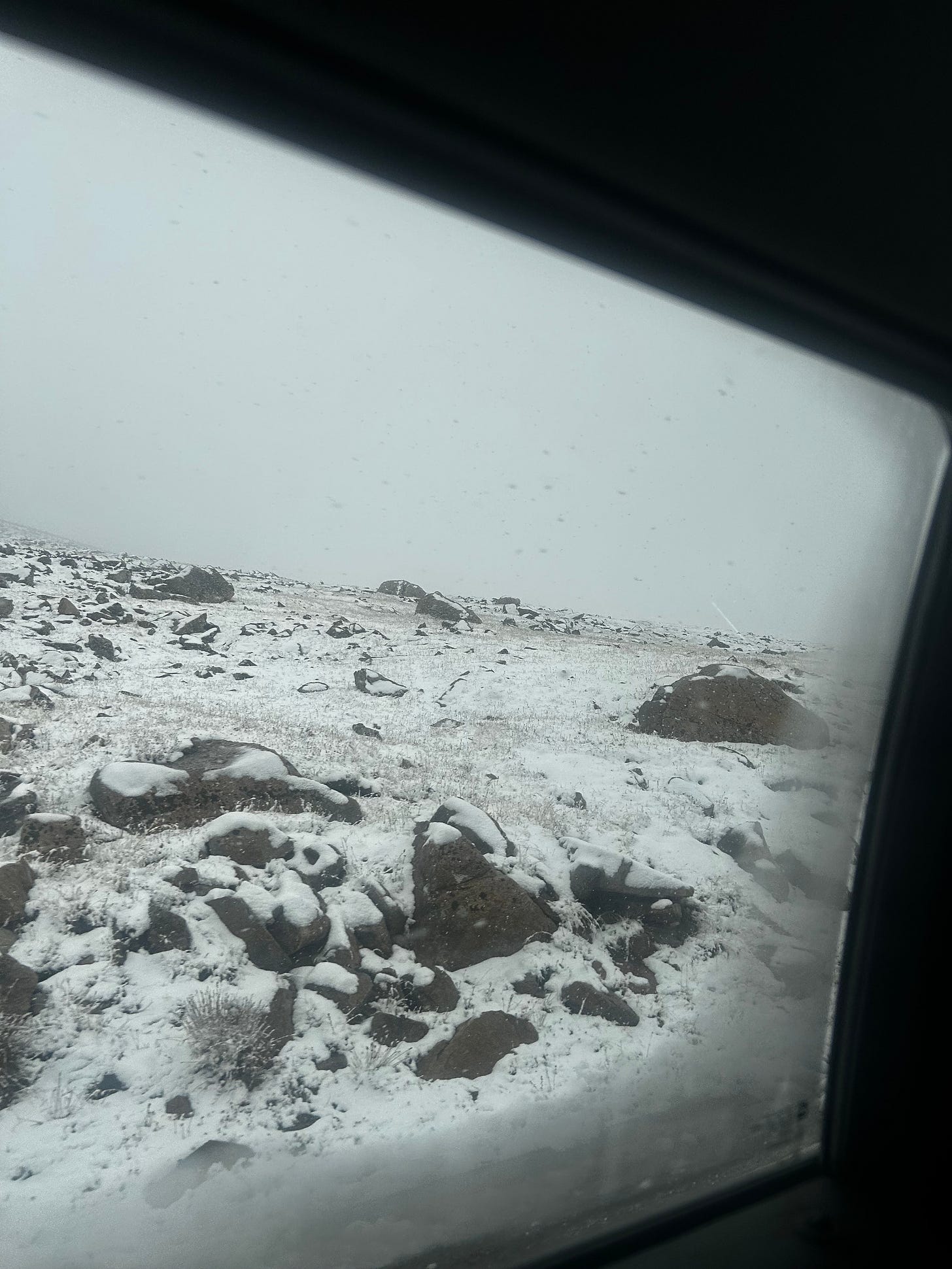 But, when we had to take this same route the next morning at 7 AM…we realized that Temperatures at the top of mountains drop to freezing. Despite it being 80 degrees the day before, the top of the mountain was sub 32. We ended up in such a sketchy situation that we had to drive below 5 MPH just to make it over the very peak. Here’s some timelapse of the snowy scenes before a downpour of snow began, and we had to get serious about making it out safely. Note, this is the same path we drove in the previous video with no snow…