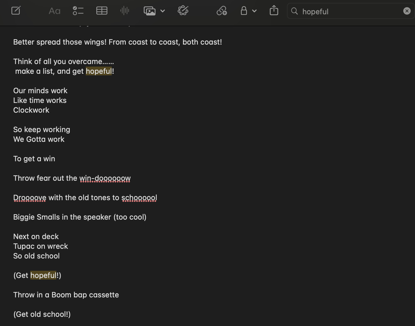 I opened up my iphone notes, and wrote out some lyrics. I came up with these myself. But, you can just as easily ask GPT or Gemini to create them for you.