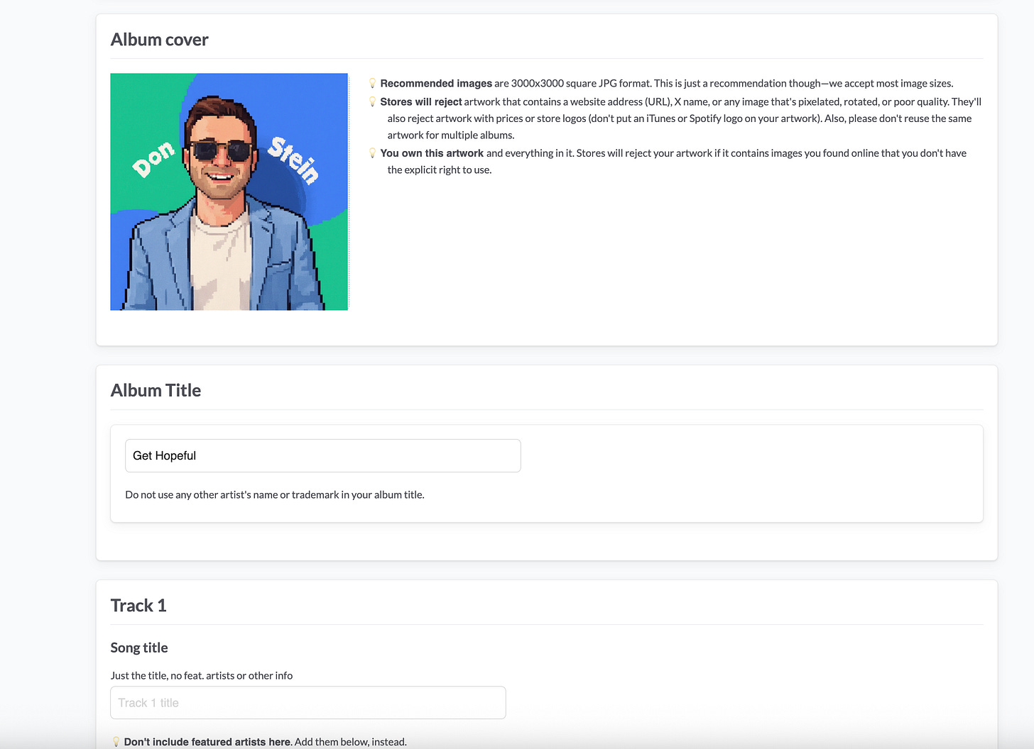 From there, you simply upload the audio file, give your song a name, click around a few random buttons, and viola! You’re on your way to being a published artist with your music on Spotify. So cool!